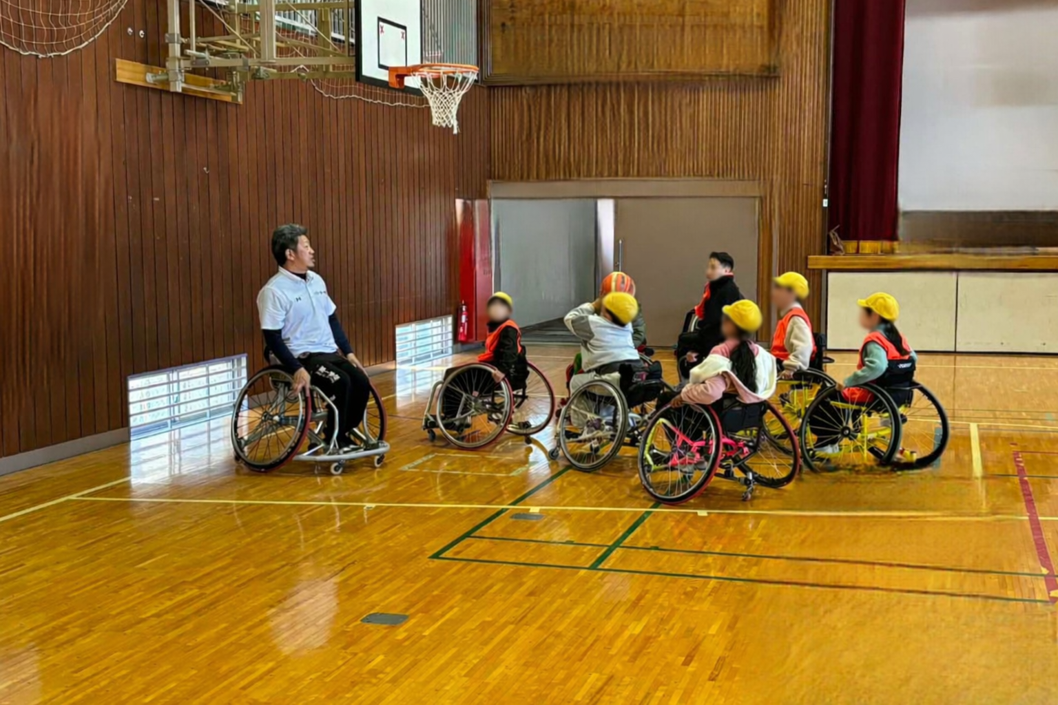 当社は、NPO法人パラキャンを通じて、当社社員でパラアスリートである石原正治が小・中学校、高等学校等を訪問し、子どもたちに車いすバスケットボールを体験してもらう活動を実施しています。パラスポーツ体験や選手との交流を通じて、子どもたちが多様性や共生社会への理解を深める機会を提供しています。